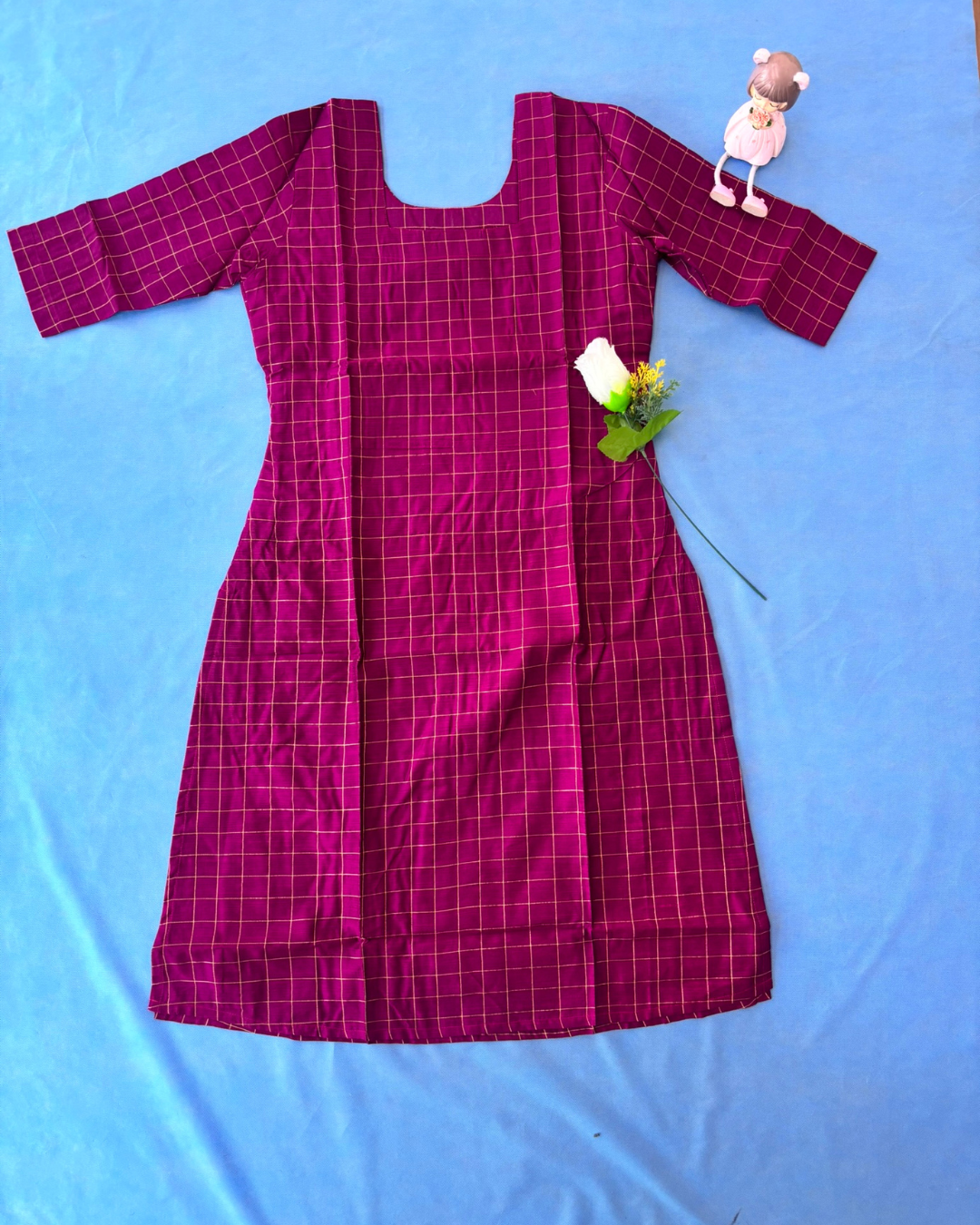 Fabric: Raw Silk Pattern: Woven geometric butta with subtle lines Colour: Majenta Neckline: Round-neck...