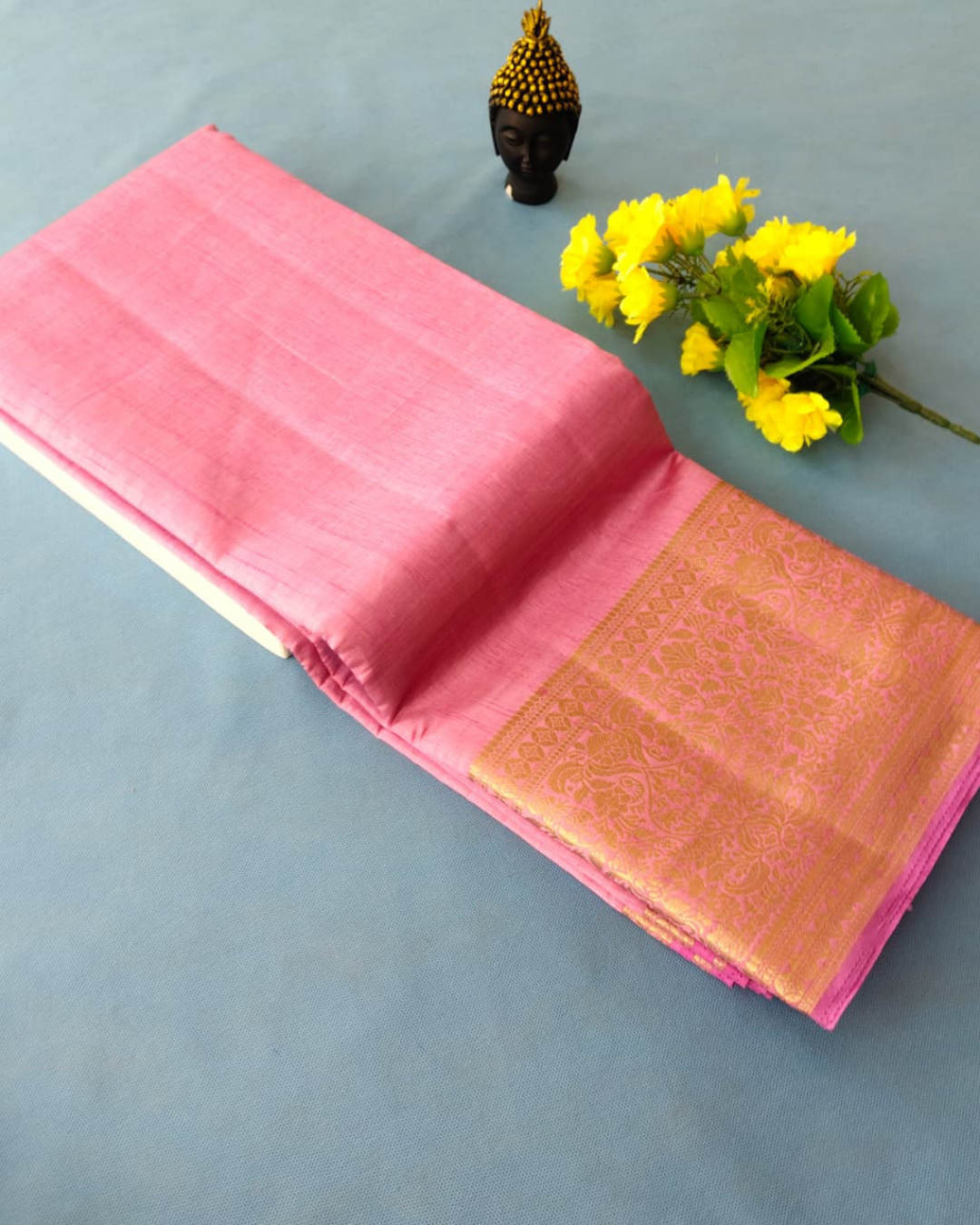 Product Details Fabric: Mango Silk Colour: Ash Grey | Blush Pink Border: Antique Gold zari...